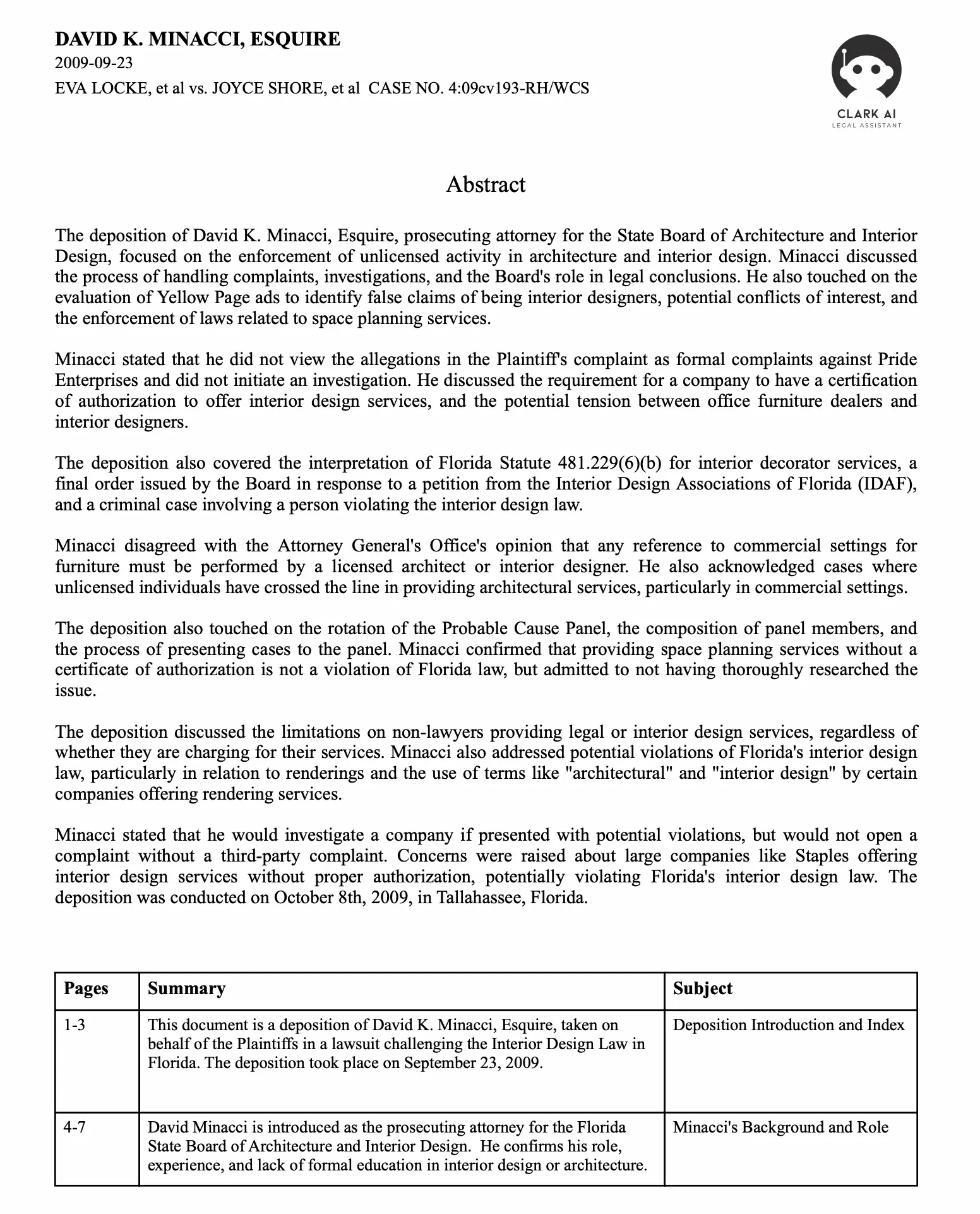 Get instant access to page-line summaries, narrative summaries, and issue summaries.